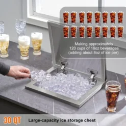 VEVOR Drop In Ice Chest, 21″L X 17″W X 18″H Stainless Steel Ice Cooler, Commercial Ice Bin With Cover, 40 Qt Outdoor Kitchen Ice Bar