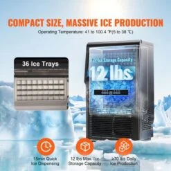 VEVOR Commercial Ice Maker Machine, 70lbs/24H Ice Maker Machine With 12lbs Storage Capacity, 36 Ice Cubes In 15 Minutes, LED Digital Display
