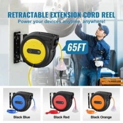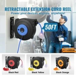 VEVOR Retractable Extension Reel, Heavy Duty 12AWG/3C SJTOW Power Cord 45 FT 12AWG, Black