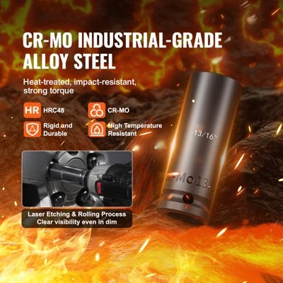 High Torque: Distinguished by its hexagonal drive design, which sets it apart from traditional designs lacking rounded corners, this socket tool set significantly reduces pressure exerted on fasteners during impact. As a result, it minimizes wear and effectively prevents bolt rounding and stripping.