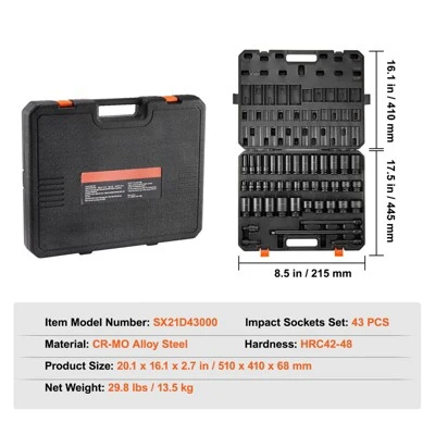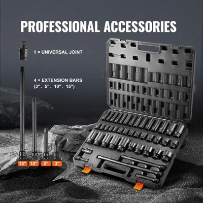 Abundant Components: This comprehensive set includes 19pcs SAE deep sockets and 19pcs SAE shallow sockets: 3/8″, 7/16″, 1/2″, 9/16″, 5/8″, 11/16″, 3/4″, 13/16″, 7/8″, 15/16″, 1″, 1-1/16″, 1-1/8″, 1-3/16″, 1-1/4″, 1-5/16″, 1-3/8″, 1-7/16″, 1-1/2″. It also includes 4 extension bars (3″, 5″, 10″, 15″) and a universal joint.