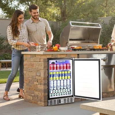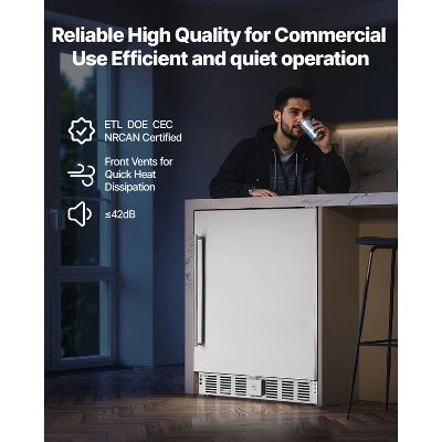 Durable and Reliable: This built-in or freestanding beverage fridge is weather-resistant for outdoor use. It comes with a door lock at the bottom to effectively prevent accidental injuries, especially by children.