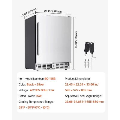 Flexible Installation: The front vent ensures fast heat dissipation, making it ideal for built-in undercounter installation, both outdoor and indoor. You can adjust the feet to fit the height differences between the beverage fridge and the countertop.