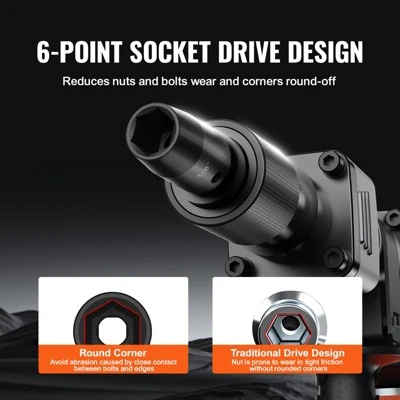 High Torque: Distinguished by its hexagonal drive design, which sets it apart from traditional designs lacking rounded corners, this socket tool set significantly reduces pressure exerted on fasteners during impact. As a result, it minimizes wear and effectively prevents bolt rounding and stripping.