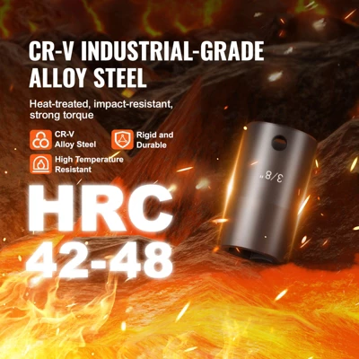 CR-MO Industrial-Grade Alloy Steel: Crafted from premium impact-grade alloy steel, our 3/8″ impact socket set with CR-MO industrial-grade alloy steel offers exceptional enhancements in impact resistance and absorption. Through the utilization of vacuum heat treatment, the steel undergoes rapid heating and cooling processes, resulting in a polished and highly durable surface. This makes it well-suited for a wide range of operational environments.