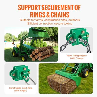 High Load Capacity: The tractor bucket hooks are constructed from G70-grade steel, providing exceptional strength and durability. With a maximum load capacity of 15,000 lbs, it offers a broad towing range and can accommodate various sizes, weights, and shapes of towed objects. This design ensures that towing tasks can be completed quickly and easily, making it an ideal choice for both agricultural and industrial applications.