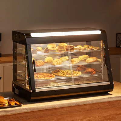 Highlight Your Food: Thickened tempered glass not only provides insulation but also showcases food clearly. Built-in tri-color lights inside the display cabinet make your food bright and attractive.