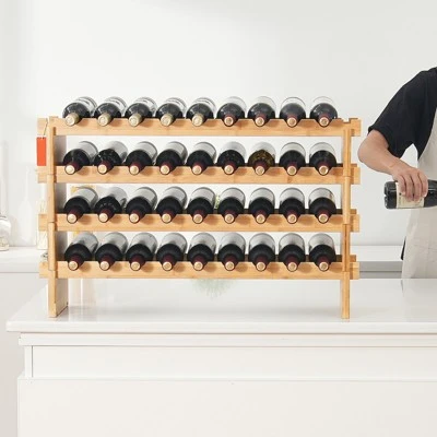 - Holds up to 36 bottles with 4 stackable layers, perfect for wine enthusiasts.