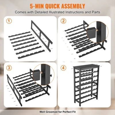 Hassle-Free Assembly: Assembling our freestanding wine rack is a breeze. Simply follow the easy instructions to tighten the screws, and you can set up the rack immediately. If you need to move the rack, be sure to remove the bottles first.