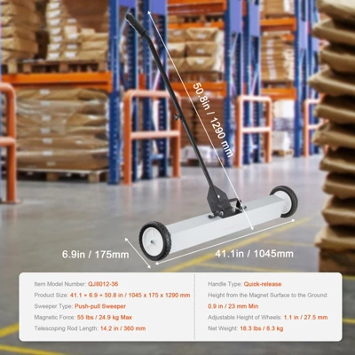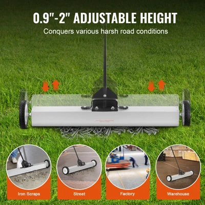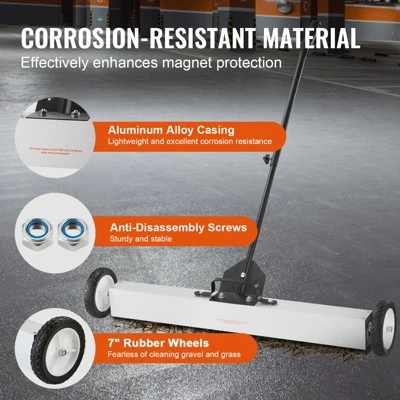 VEVOR 55Lbs Rolling Magnetic Sweeper With Wheels,Push-Type Magnetic Pick Up Sweeper, 24-inch Large Magnet Pickup Lawn Sweeper