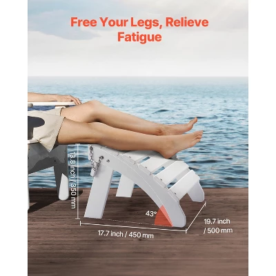 Ergonomic Design: Dimensions: 17.7L x 19.7W x 13.8H inch. The 13.8-inch height and 43-degree angle combination provides excellent comfort, allowing you to relax your legs. The slatted surface supports your legs while ensuring optimal airflow. With multiple placement options, the Adirondack Ottoman foot rest meets different needs and provides a variety of experiences.