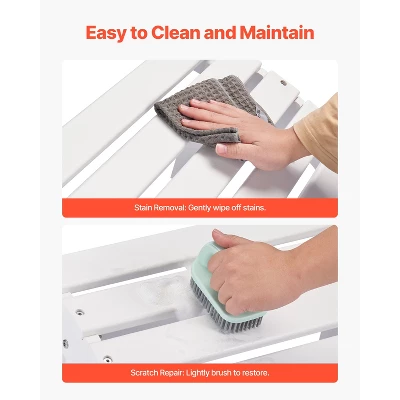 Easy Assembly: Just 4 steps—open the chain bolts, insert screws, tighten, and secure the Adirondack foot stool. Quick to assemble, saving you time and effort. Clean with soap and water, and use a soft brush or sandpaper sponge to buff out scratches.