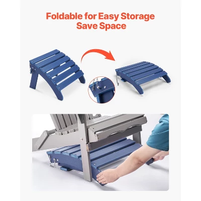 Foldable Design: The Adirondack Ottoman folds flat for easy, compact storage, ideal for tight spaces. It can be conveniently stored under the Adirondack chair and pairs seamlessly with it, making it the ideal companion for any outdoor setting.
