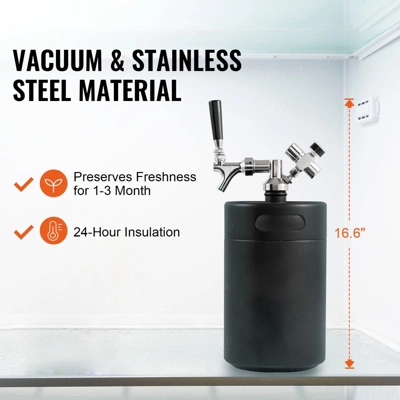 Vacuum Sealing: The mini dispenser system maintains a vacuum pressure inside the keg, keeping the beer fresh for 1-3 months. Remember to purge the air inside before use.
