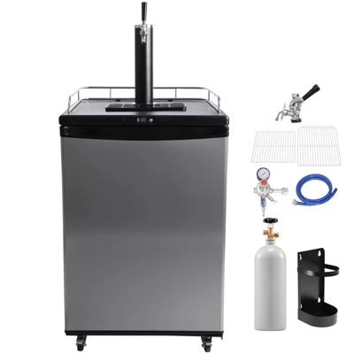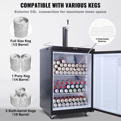 Spacious and Reliable: We offer an external bracket for the COâ‚‚ tank, which helps save space inside the kegerator. The kegerator itself is spacious enough to accommodate beer barrels of varying sizes, including US-standard full-size, quarter, and sixth barrels. Plus, there are two additional shelves provided, which allow you to use the kegerator as a refrigerator as well.