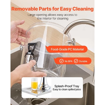 Easy to Clean: Made from food-grade PC material, the large drink dispenser for parties is stain-resistant, durable, and dishwasher-safe. The removable lid and wide opening make cleaning the interior effortless