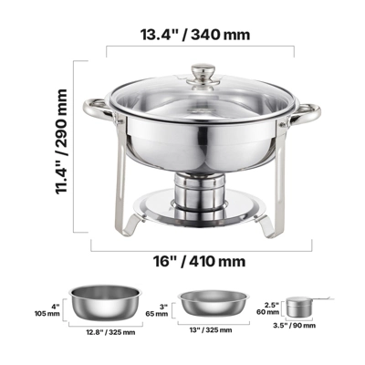 Ample 5QT Capacity: With a large capacity, this buffet chafer can hold multiple servings of your favorite dishes. The included multifunctional meal clip makes it easy to serve pasta, steak, soup, chicken, and more