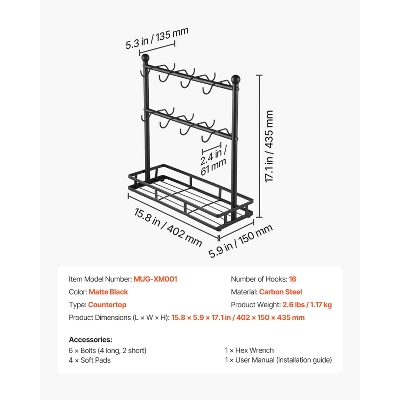 Space Saving: The installed mug holder measures 15.8 x 5.9 x 17.1 in / 402 x 150 x 435 mm. Its compact design takes up minimal space while keeping things organized and freeing up valuable countertop space