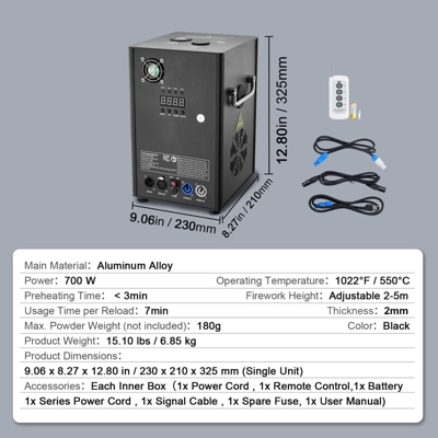 High Performance: This fireworks controller boasts a powerful 700W output and utilizes an advanced DMX control system, allowing for multiple connections to meet your needs. You can simultaneously connect signal lines for up to 6 machines, creating a dazzling light show that captivates the entire audience.