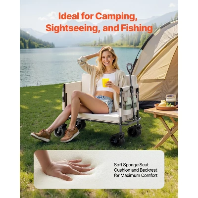 Comfortable Cushion & Ideal Height: The seat cushion is 13.78 inches / 35 cm from the ground, made of 600D Oxford cloth and foam, offering a seating height similar to regular chairs. Enjoy a stable, comfortable sitting experience with this collapsible wagon, while camping, watching events, or relaxing outdoors, relieving fatigue from prolonged sitting.