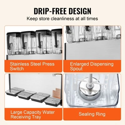 User-Friendly Design: Features a stainless steel press switch for convenient juice dispensing and an enlarged dispensing spout for uninterrupted drinking. It can be operated with one hand. The bottom has a large capacity water receiving tray to prevent beverage dripping, eliminating the need for frequent water pouring. Enhanced radiator and anti-slip base ensure safety.
