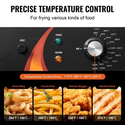 Temperature Control: You can easily adjust the temperature from 175°F to 390°F (80-200°C). No matter what, you will be ready to bring on the heat! This deep fryer will automatically shut off when the temperature is over 446℉(230℃) or the temperature controller breaks down.