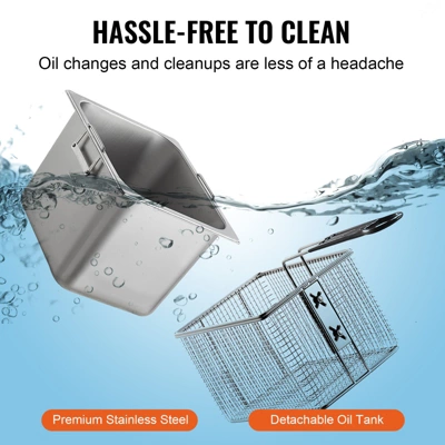 - 9.5Qt oil tank for frying a variety of foods, ideal for businesses and parties.