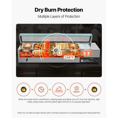 Fast Even Heating: Equipped with a strong 1500W stainless steel heating tube, this commercial food warmer heats food quickly to keep flavors fresh. You can set the temperature from 86–185°F (30-85°C), adjusting to suit various dishes and serving needs