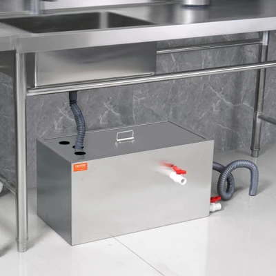 Wide Application: The overall dimensions of this grease trap are 24.2×12.2×12.6 inches (approximately 615x310x320mm). It is suitable for home kitchens, convenience stores, coffee shops, restaurants, and other commercial places.