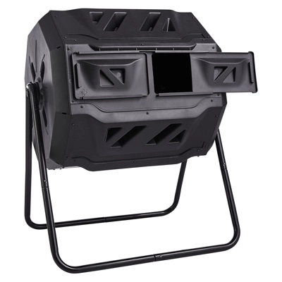 Dual Chamber, High Capacity: Our compost bin features a dual chamber with a generous capacity of 43 gallons. Perfect for large families and avid gardeners, you can simultaneously compost in one chamber while adding new organic material to the other, reducing overall composting time.