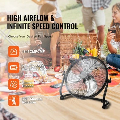 High Airflow Design: This floor-standing rechargeable fan features a brushless copper motor that delivers quiet yet powerful airflow. It offers stepless speed control, allowing you to choose the desired fan speed to meet your various cooling needs.