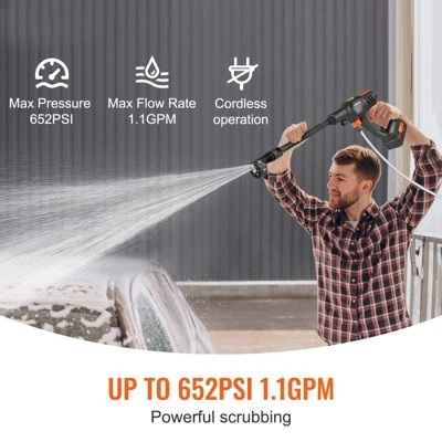 652PSI High Pressure: The cordless pressure washer comes with powerful pressure to easily eliminate stubborn stains. With a 290PSI regular pressure mode for daily cleaning of walls and floors, and a 652PSI high-pressure mode with a 1.1GPM flow rate designed for cars and paving stones, no grime can hide.
