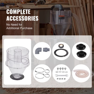 Ideal for Various Applications: Thanks to its high-efficiency separation, it easily handles cleaning tasks in workshops or woodworking studios. Whether you’re dealing with fine sawdust or larger debris, this separator ensures your workspace remains clean.