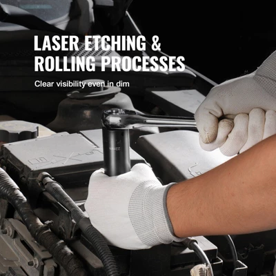 CR-V Industrial-Grade Alloy Steel: Crafted from premium impact-grade alloy steel, our 3/8″ impact socket set with CR-V industrial-grade alloy steel offers exceptional enhancements in impact resistance and absorption. Through the utilization of vacuum heat treatment, the steel undergoes rapid heating and cooling processes, resulting in a polished and highly durable surface. This makes it well-suited for a wide range of operational environments.