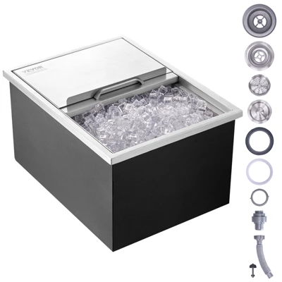 Large Capacity: A large-capacity drop in ice bin that can hold about 58.5QT (55.23L) of ice. When filled, it can make approximately 234 cups of 16oz beverages. Ideal for storing a large amount of ice or chilling various drinks.