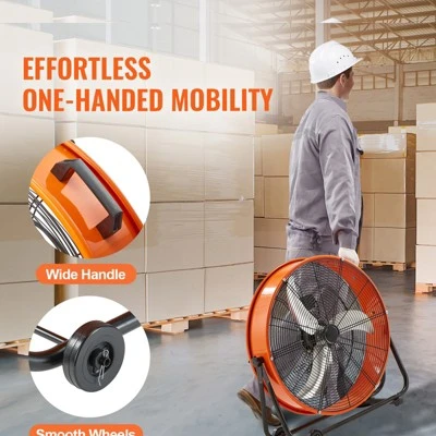 Easy Mobility: Designed with a wide handle for single-handed transport, this fan is easy to move. Smooth-rolling casters make it effortless to navigate across smooth surfaces or rough terrain, ensuring your ventilation needs are always within reach.