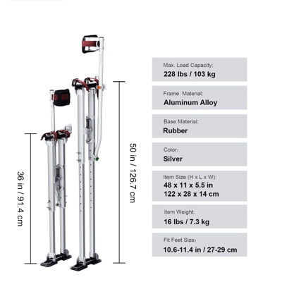 Sturdy Aluminum Alloy: Get ready for more support! VEVOR’s drywall stilts can easily hold up to 228 lbs. Made of robust aluminum alloy, featuring rust-proof, non-deformed, and optimal stability performance. Get ready to set the standard! In addition, you no longer have to worry about breakage due to its long service life.