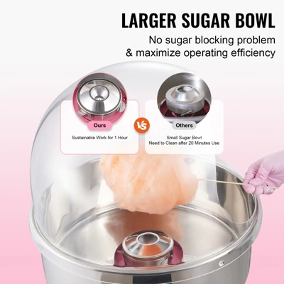 Work with Any Candy You Like: This cotton machine allows you to use the traditional flossing sugars, milk sugars, fruit cubes, or any of your favorite hard candies to make delicious cotton candies. With a compact size, it is suitable for countertop use, and it is perfect for carnivals, festivals, birthday parties, and sports events.