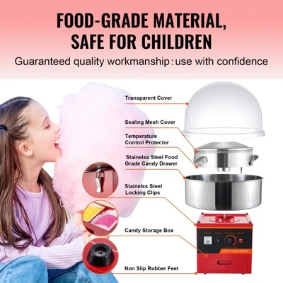 Work with Any Candy You Like: This cotton machine allows you to use the traditional flossing sugars, milk sugars, fruit cubes, or any of your favorite hard candies to make delicious cotton candies. With a compact size, it is suitable for countertop use, and it is perfect for carnivals, festivals, birthday parties, and sports events.