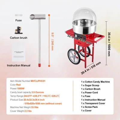 Work with Any Candy You Like: This cotton machine allows you to use the traditional flossing sugars, milk sugars, fruit cubes, or any of your favorite hard candies to make delicious cotton candies. Large wheels and sturdy handle facilitate movement, and it is perfect for carnivals, festivals, birthday parties, and sports events.