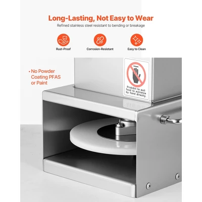 Easy to Use: Ready to use out of the box with no installation required. Simple operation with one-touch automatic dough pressing. Complete dough pressing in just 3 steps. The pizza dough press machine is easy to disassemble for cleaning