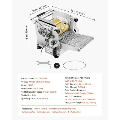 Durable & Long-Lasting: Designed for longevity, this tortilla maker is corrosion-proof and deformation-resistant. Its stainless steel rollers and conveyor system ensure reliable and clean performance.