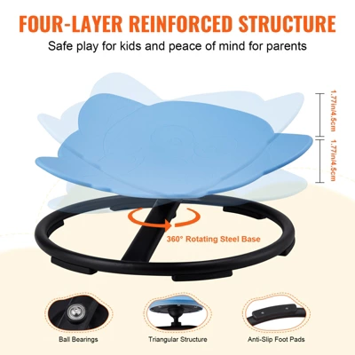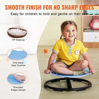 Secure Materials: We prioritize security with eco-friendly PP material, molded in one piece. The edges are carefully polished for smoothness, preventing injuries. The recessed sensory seat provides comfort, and the thickened edges offer a secure grip for kids while spinning.