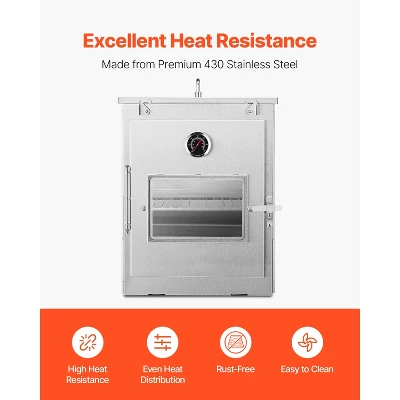 430 Stainless Steel Material: The panels of the camping oven evenly distribute heat, ensuring durability and excellent heat endurance. It is easy to clean and rustproof, allowing you to confidently cook your food