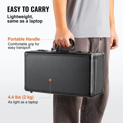 - Aluminum frame with reinforced corners and shock-absorbing feet protects your cards during travel and handling.