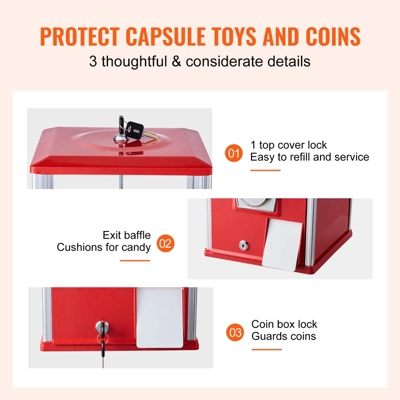 - Runs on 25 – cent coins, no electricity needed; insert, rotate 360° for quick access to capsule toys.