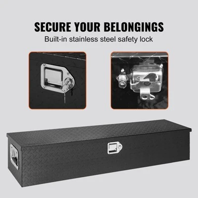 Last A Lifetime: VEVOR truck tool box is constructed from lightweight yet durable aluminum alloy, featuring a diamond tread pattern and double-sided power coating process. This design helps to prevent rust, corrosion, and abrasion, ensuring long-lasting use for several years. Additionally, the tool box is equipped with upgraded corners to secure the packaging and prevent any damage or deformation during transportation.