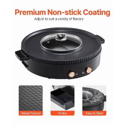 Non-stick & Easy to Clean: With a non-stick coating, our hotpot pot electric with grill minimizes smoke and oil. Meanwhile, the raised grooves reduce sticking. Enjoy easy food flipping and effortless cleaning