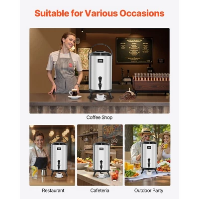 Real-Time Temperature Display: Built-in temperature display lets you monitor drinks in real-time, ensuring perfect hot or cold serving. Large capacity suits commercial use, making this insulated beverage dispenser ideal for busy beverage stations