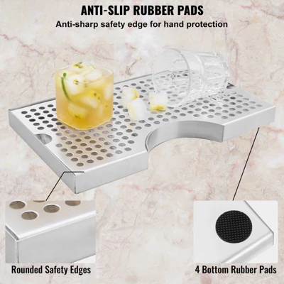 Solid & Secure: No spills, no hassle – VEVOR kegerator beer drip tray effectively catches faucet drips and excess liquid for clean countertop. With 4 anti-slip rubber pads, it stays firmly in place on your bar counter. Plus, its smooth rounded edges prevent hand scratches, ensuring safe and comfortable use.
